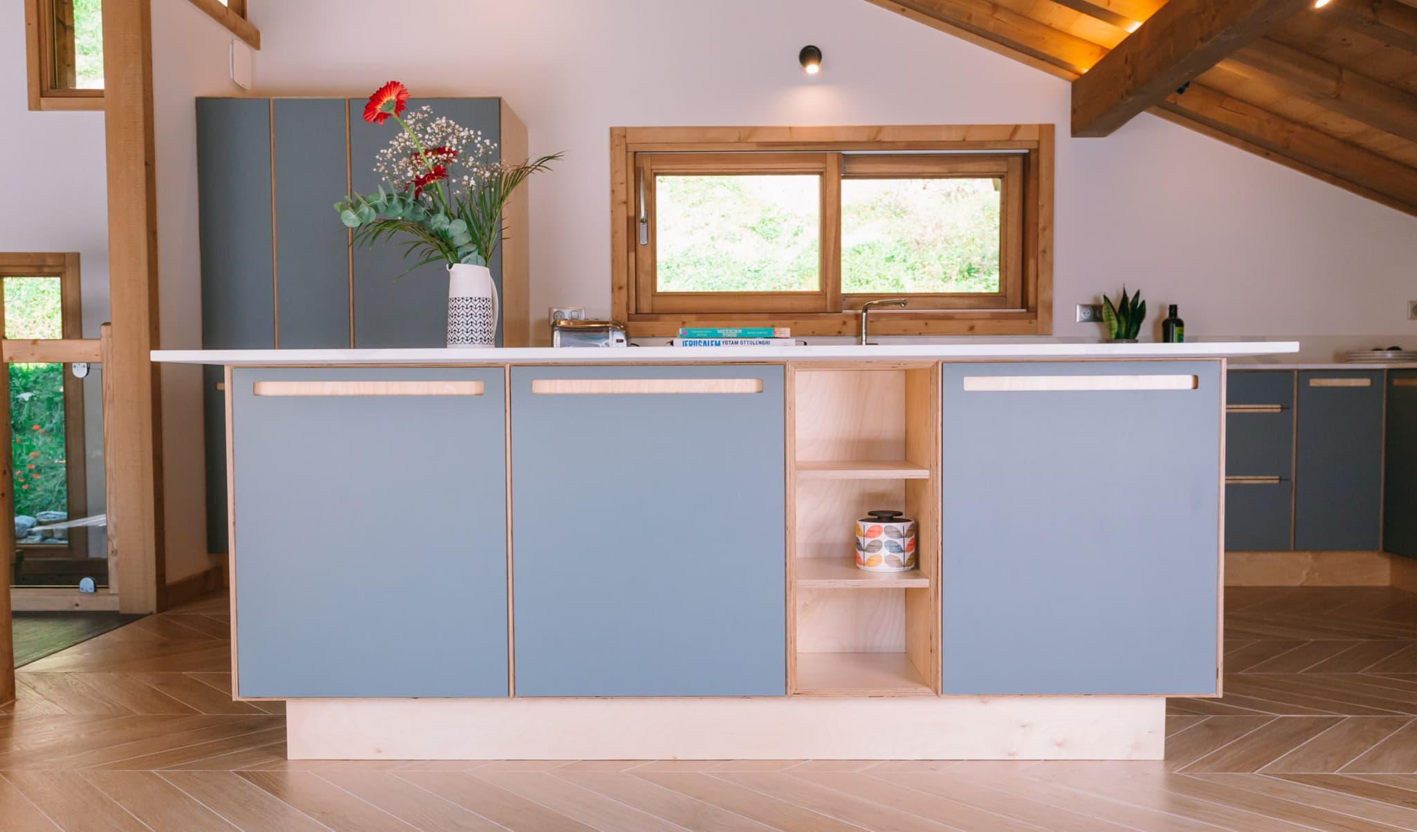 Nous avons été ravis de pouvoir concevoir et fabriquer cette magnifique cuisine en contreplaqué de bouleau. Le contreplaqué de bouleau dégage une beauté intemporelle et une chaleur naturelle, alliant fonctionnalité et charme esthétique. Le grain fin et la texture lisse du contreplaqué mis en valeur par les joints en onglet apportent une élégance organique aux armoires offrant une toile de fond subtile et sophistiquée. Nous avons associé le contreplaqué de bouleau au linoléum Ash Forbo Furniture qui ajoute du contraste et de la texture.