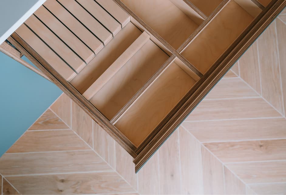 Nous avons créé un tiroir à couverts en contreplaqué de bouleau sur mesure pour répondre aux besoins des clients.