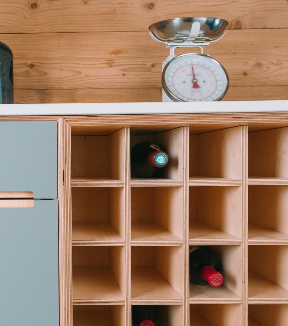 Les tons époustouflants du contreplaqué de bouleau mis en valeur par les joints en onglet.